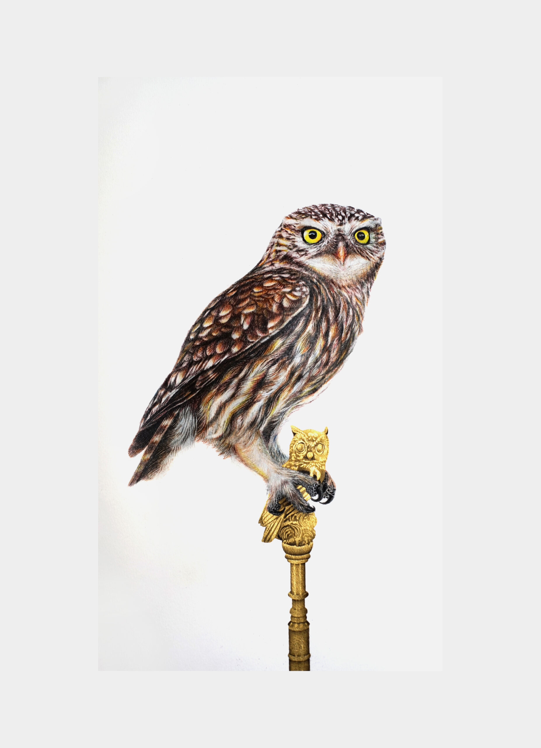 Diederich (Guard 1) – Festivity at Humboldt – Pastell chalk, crayon on paper, ink on gold leaf, ~40 x 37cm, 2021